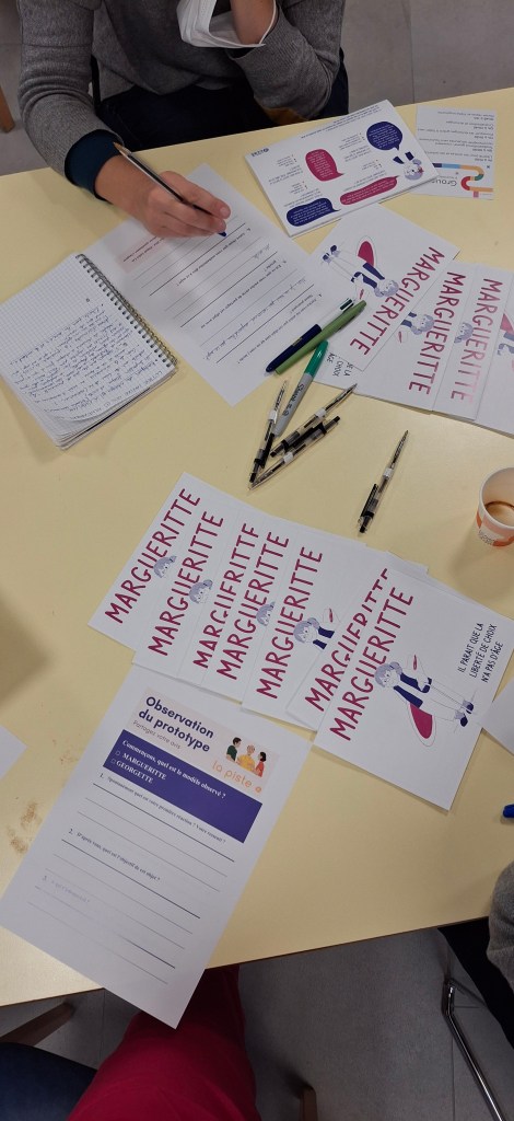 Après un état des lieux ayant été effectué auprès de spécialistes de la thématique (sociologue, aidant, aidée, soignant, agent travaillant sur la thématique du soin, proche …), Doriane et Joëlle Sibille ont organisées des temps de co-construction avec des acteurs du CCAS.